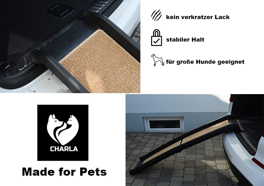 Charla klappbare Hunderampe für Auto – geeignet für große Hunde – mit Anti Rutsch Material, Kofferraum Einstiegshilfe, gelenkschonend