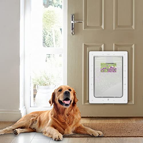 Petouch große Haustiertür, Hundetür, Katzentür, 42.4 x 29.7 cm, für Innentürrahmen, weiche getönte Klappe und 2-Wege-Schlösser für Bildschirme passend für große Bildschirme, Glas und Bildschirm, weiß