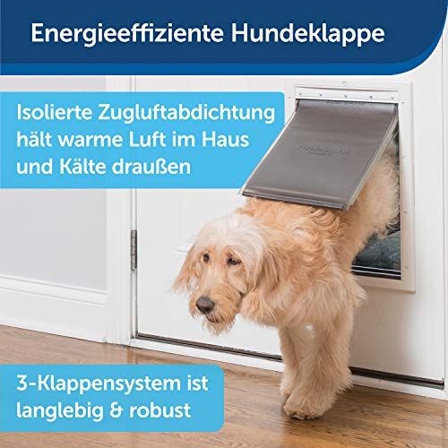 Specification: PetSafe Kunststoff-Haustierklappe für extremes Wetter, Isolierend und Energieeffizient, Mit Verschlussplatte, Größe L, Weiß