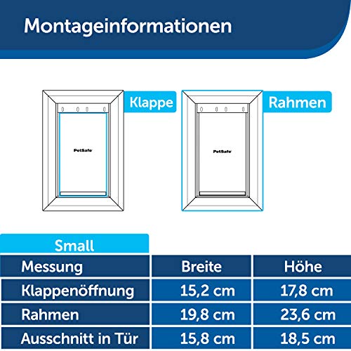 MAẞE: Die Maße der PetSafe kleinen Katzenklappe (S) betragen: 23,60 cm x 19,80 cm; maximale Schulterbreite 14,70 cm. Sie ist für Katzen, Kätzchen und kleine Hunde bis zu 7 kg gut geeignet.
