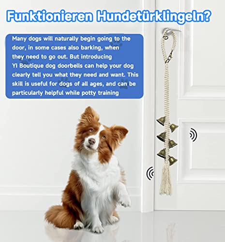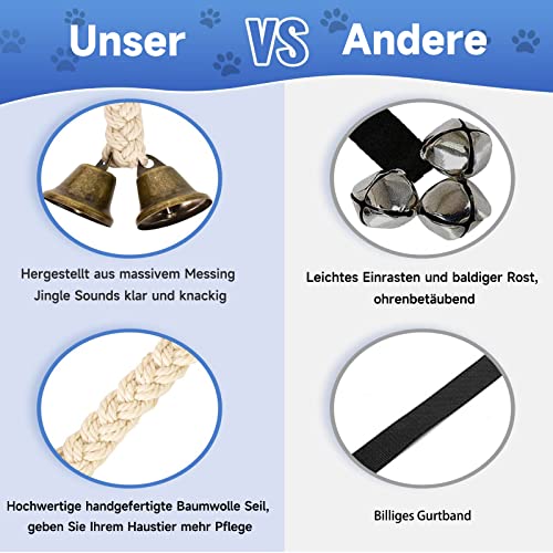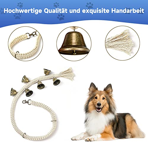 Hochwertige Türglocke: Die Glocke zum Aufhängen an der Tür für einen Hund ist aus haltbarem Baumwollseil gewebt, das schön und umweltfreundlich ist. Die 6 Ringe aus Bronze sind aus haltbarem Metall mit spezieller Bearbeitungstechnik, die ihnen einen klassischen Stil verleiht. Ihr Klang ist sehr süß.