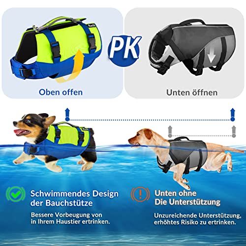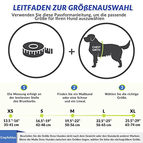🐕Mehrere Größen erhältlich — Erhältlich in den Größen XS-XL und mit verstellbaren Trägern, gibt es eine Hundeschwimmweste für Ihren Hund, egal ob er klein und dick oder lang und dünn ist. Tipp: Wenn Ihr Hund zwischen zwei Größen liegt, empfehlen wir, die größere Größe zu wählen.
