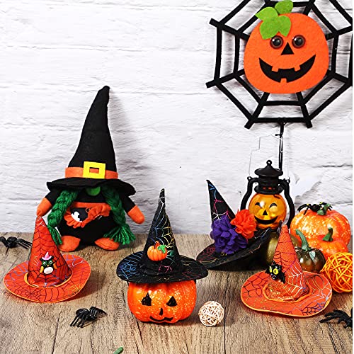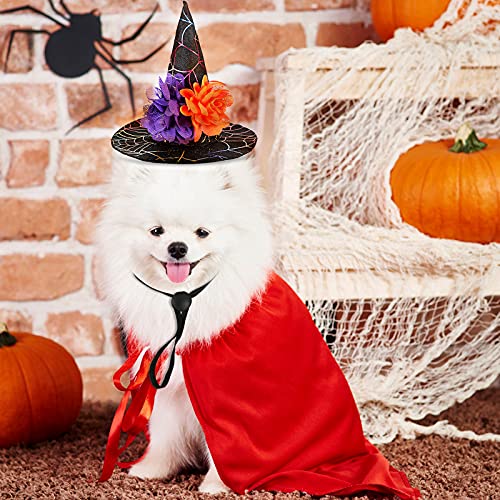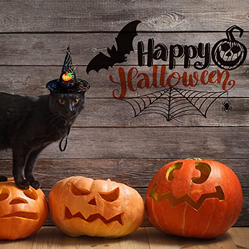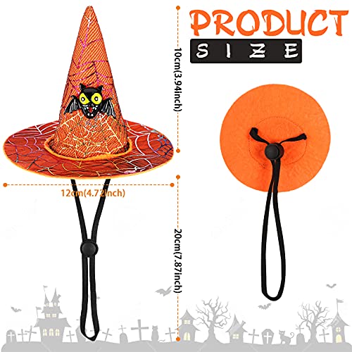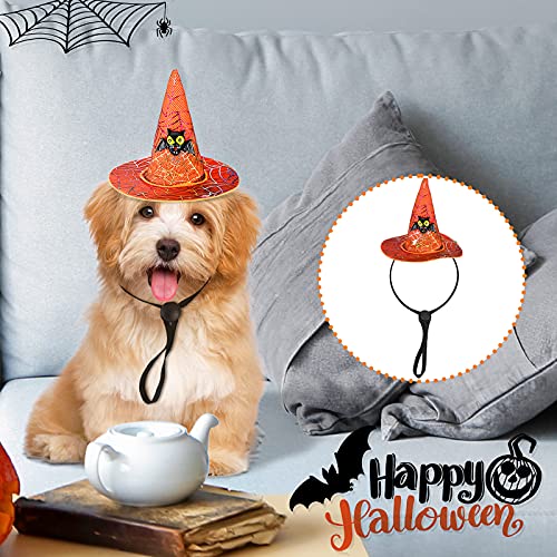 4 Stücke Halloween Haustier Hüte Einstellbare Niedliche Haustier Hexenhut für Kleine Hunde Katze Cosplay Kegel Hexenhut mit Kürbis Fledermaus Eule Blumen Ornamente Haustier Kostüm Zubehör