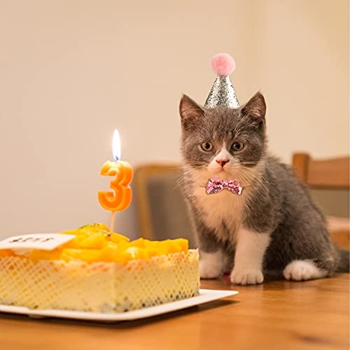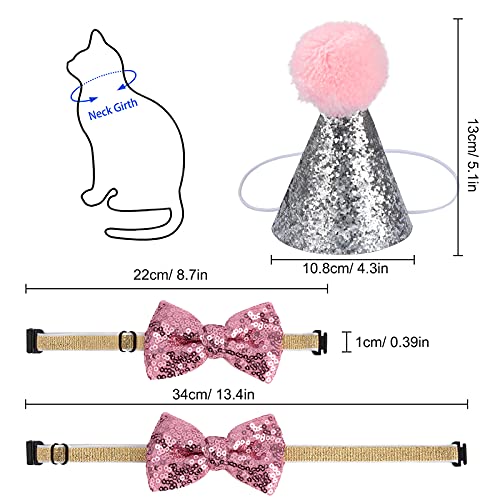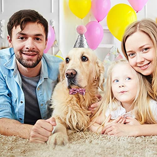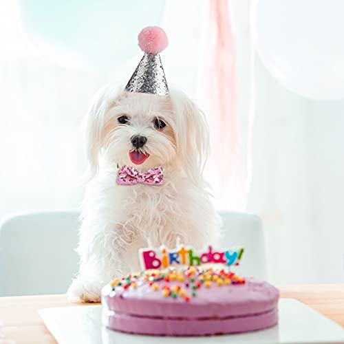 Haustier Geburtstag Hut Hund Katze Partyhüte mit Fliege Pailletten Verstellbarem Headwear Kostüm für Katzen Hunde 2 Stück