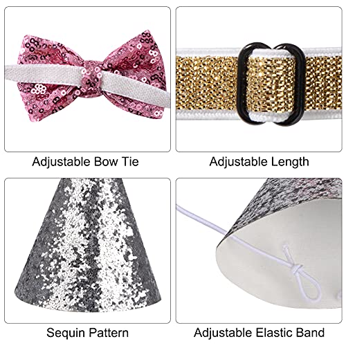 Specification: Haustier Geburtstag Hut Hund Katze Partyhüte mit Fliege Pailletten Verstellbarem Headwear Kostüm für Katzen Hunde 2 Stück