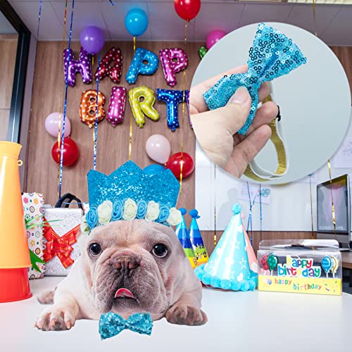 Hund Geburtstag Bandana Hund Geburtstag Hut, Happy Birthday Banner und Bowknot und Geburtstagskarte für Hund Geburtstag Party-Dekorationen(Blau)