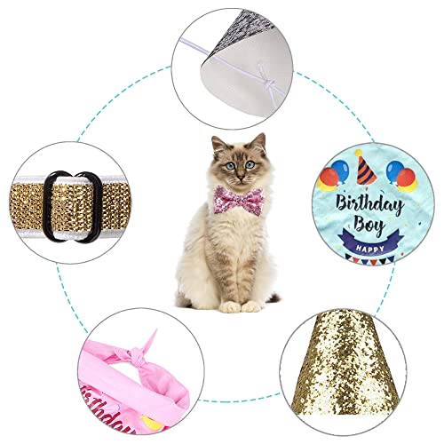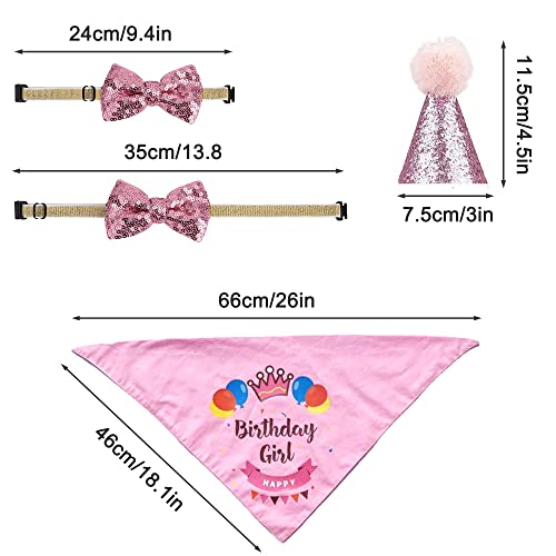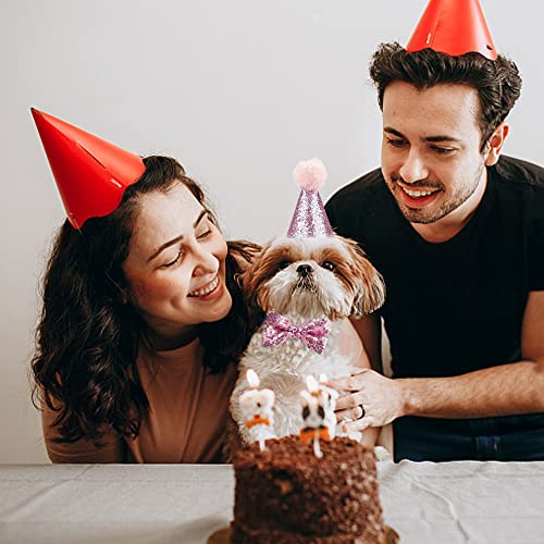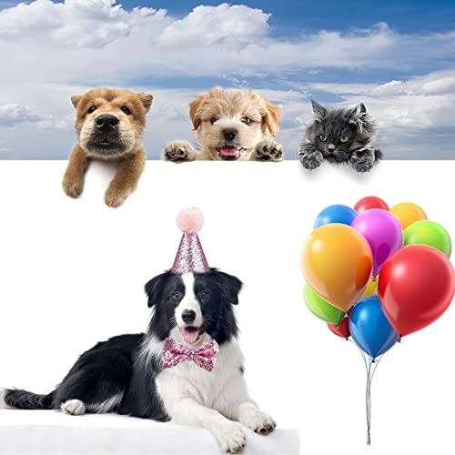 SRJE Haustier Geburtstag Dekorationen Hüte Party Dekoration Fliege Pailletten Hund Geburtstag Dekoration Kopftücher Haustier Zubehör Dreieckstuch Partyzubehör, Geburtstagsdekorationen (Rosa)