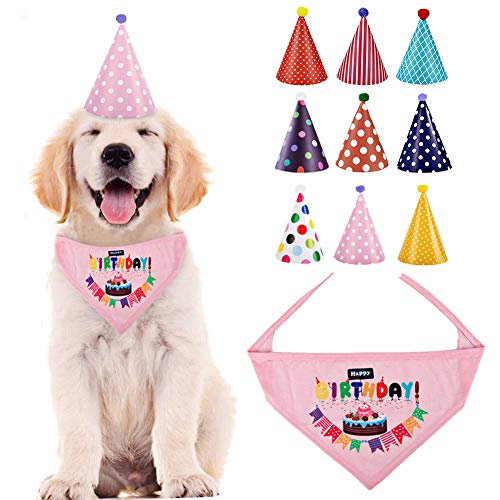 💖💖【9 Farben Hüte zur Wahl】 Hunde-Geburtstags-Halstuch-Set enthält 9 verschiedene Farben von Hüten zur Auswahl, Sie werden sich keine Sorgen mehr um die passende Kleidung machen und es ist erschwinglicher, und Sie können jeden Tag eine andere Stimmung haben.