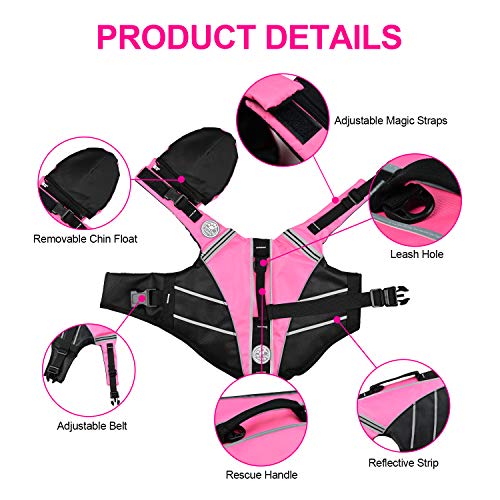 Specification: Podazz Dog Life Jacket Verstellbare Rettungsweste für Tierretter mit Griff Dog Life Preserver mit Chin Float Dog Saver Flotationsweste zum Schwimmen, Surfen, Bootfahren (S)