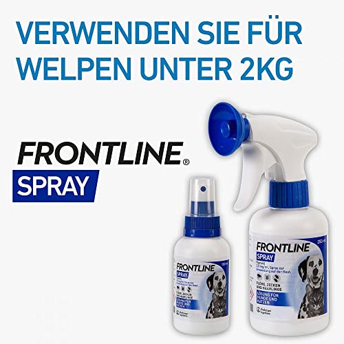 FRONTLINE SPRAY 2,5 MG/ML SPRAY ZUR ANWENDUNG AUF DER HAUT, L�SUNG F�R HUNDE UND KATZEN. Wirkstoff: Fipronil. Anwendungsgebiete: Zur Behandlung von Hunden und Katzen gegen Floh-, Zecken- und Haarlingsbefall.