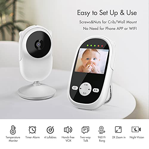 Babyphone mit Kamera, 2,4″ Babyphone Baby Monitor mit 2X digitalem Zoom, VOX-Modus, Schlaflied, Wecker,Nachtsicht, Zwei-Wege-Gespräch