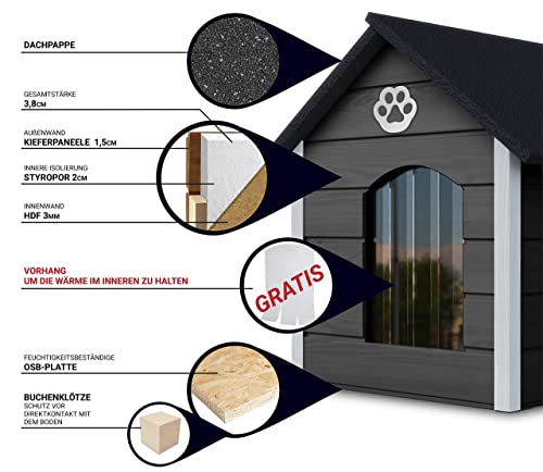GROßER RAUM: Die 90cm hohe, 104cm lange und 74cm breite XL-Hundehütte bietet ausreichend Platz für Hunde aller Rassen und Größen. Ob Deutscher Schäferhund oder Dalmatiner, es wird genug Platz für Sie sein.