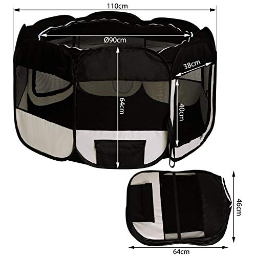 lionto Welpenauslauf aus Oxfordgewebe Tierlaufstall 110 cm Ø Höhe 64 cm, schwarz/beige