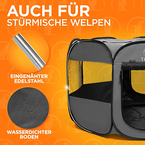 TIERHOOD Welpenauslauf faltbar [STAHLGERÜST] für Hunde & Katzen – wasserdichter Welpenlaufstall für die Wohnung – Laufstall Welpen – Hundeauslauf für Innen – Hundelaufstall – Dog Playpen