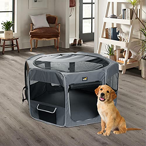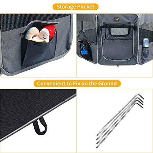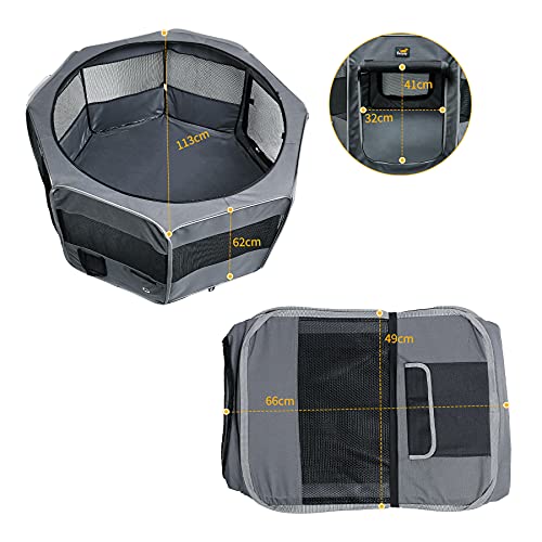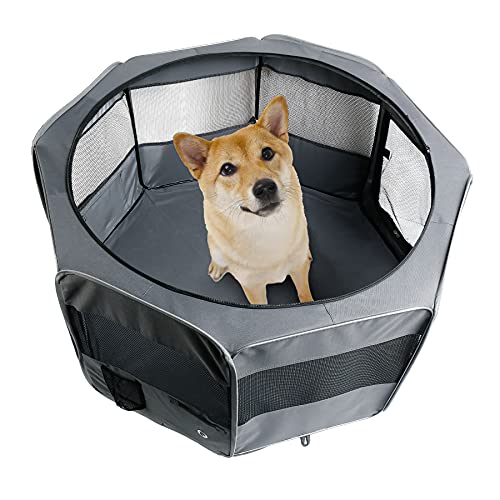 Toozey Welpenauslauf – Hundestall Hundelaufstall Hundekiste Katzentransporter – Welpenstall für drinnen/außen Abnehmbarer Reißverschluss Mesh Top Haustierzwinger – 600D Oxford Tuch (Grau)