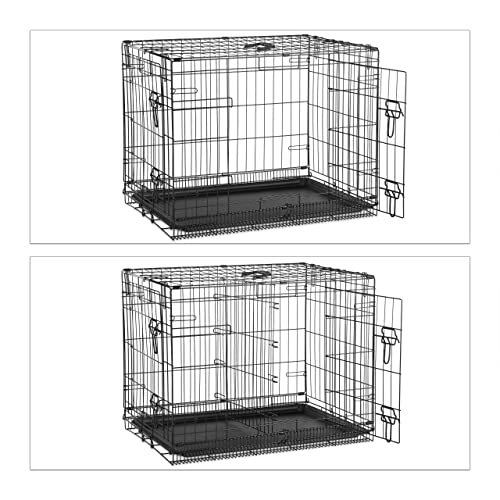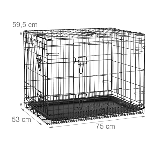 Specification: Relaxdays Hundekäfig für zuhause, Büro, Auto Hundebox, faltbar, Stahl Gitterbox mit Wanne, Kennel 59,5x75x53 cm, schwarz