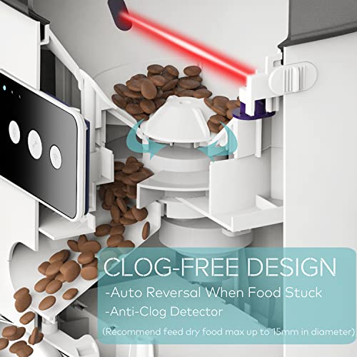 Alarm bei niedrigem Lebensmittelsensor: Der Futterautomat verfügt über einen eingebauten Sensor zur Überwachung des Lebensmittels. Wenn das Restfutter nicht ausreicht, erinnert Sie die “Pet Zero” APP mit einer Nachricht daran. Das Essen ist nicht genug und Sie müssen es nachfüllen. Der fortschrittliche automatische Umkehrmechanismus kann das Problem des Futterstaus effektiv verhindern und sicherstellen, dass Ihr Haustier nie hungrig ist.