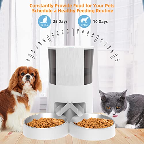 HoneyGuaridan 4.5L Katzen Futterautomat für 2 Haustiere, Automatischer Futterspender für Katzen & Hunde mit Timer, Portionskontrolle, Sprachnachricht, 6 Mahlzeiten täglich – Batterie und Plug-in-Strom
