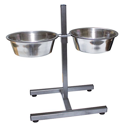 Die ideale Hunde-Bar, erleichtert das Fressen vor allem bei großen oder alten Hunden. Die beiden Edelstahlnäpfe (im Lieferumfang enthalten!) lassen sich problemlos in der Höhe verstellen und einfach in die dafür vorgesehenen Ringe einhängen.