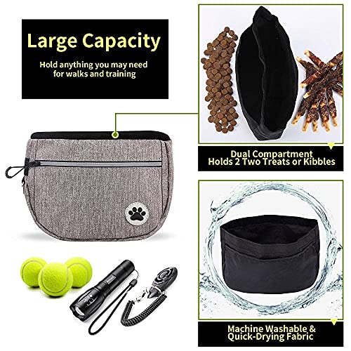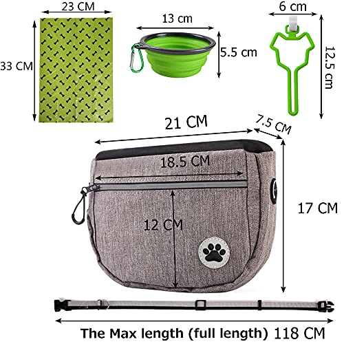 CCDSR- Hundetasche für leckerlis, Wasserdicht Hunde Futterbeutel mit Kotbeutel Spender,für Hunde zur Hundetraining und Futteraufbewahrung(grau)