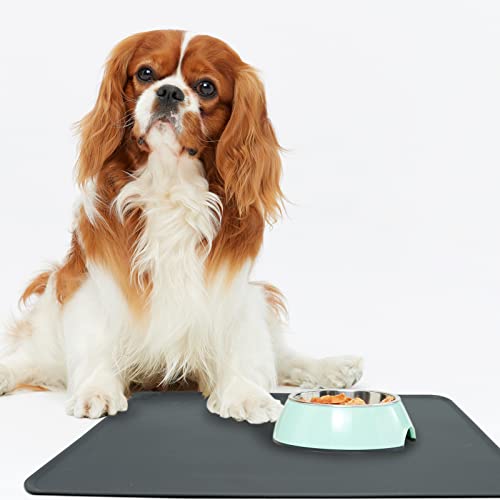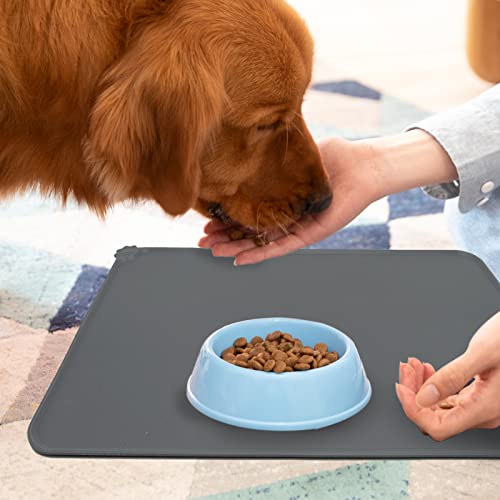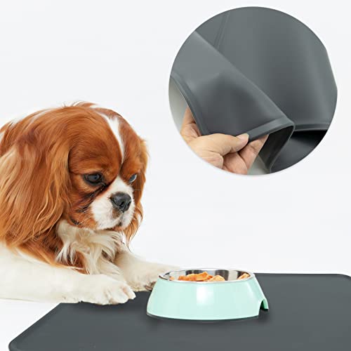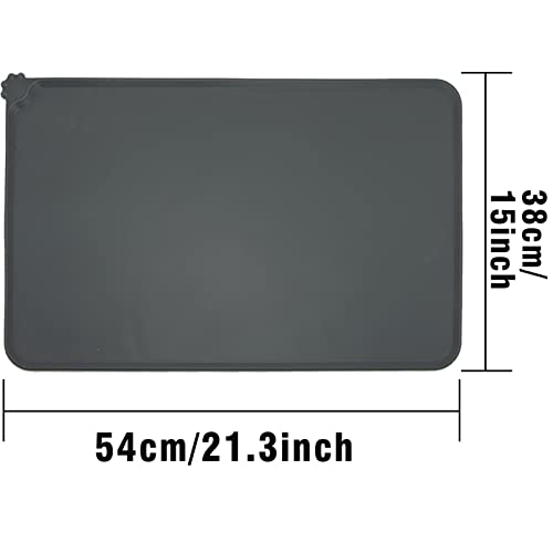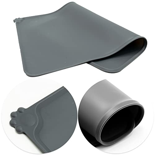 Futtermatten für Hunde, Katzen Futternapf Unterlage Silikon Futtermatten rutschfest und Wasserdicht für Hund Katze, Grau, 54x38cm