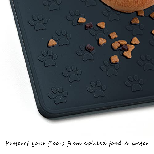 KAUKKO rutschfeste Futtermatten Napfunterlage für Hunde Katzen – Silikonmatte, Wasserabweisend/Undurchlässig mit höheren Kanten, 48x30CM