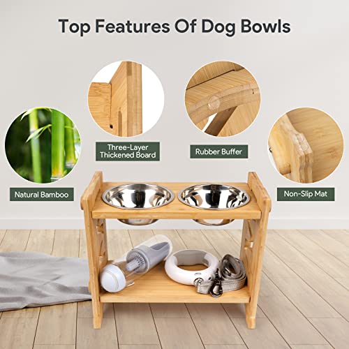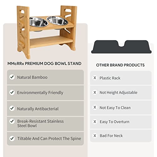 MMcRRx Hundenapf Erhöht Hunde, Futternapf Erhöht Kleine Hunde, Ständer für Hundenapf Bambus, Futterstation Hund Höhenverstellbar mit 3 Edelstahl Näpfe