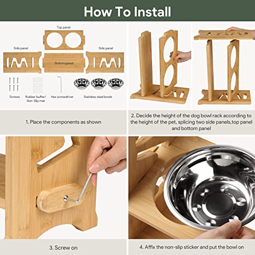 Specification: MMcRRx Hundenapf Erhöht Hunde, Futternapf Erhöht Kleine Hunde, Ständer für Hundenapf Bambus, Futterstation Hund Höhenverstellbar mit 3 Edelstahl Näpfe