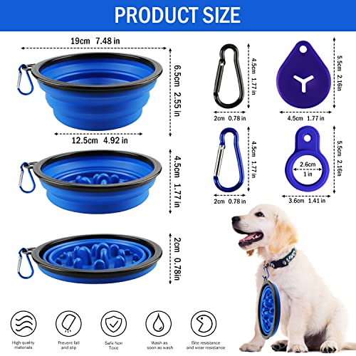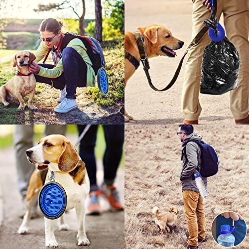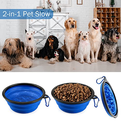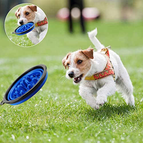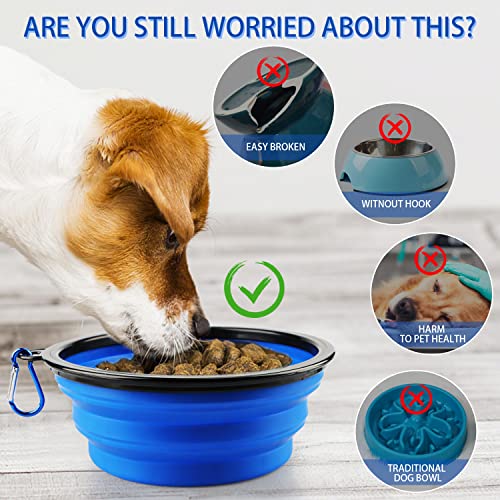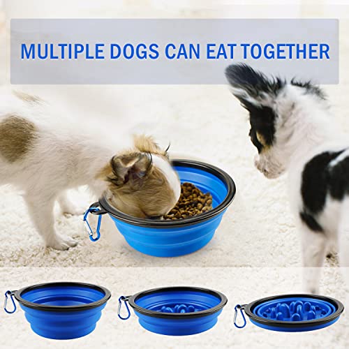 Faltbarer Hundenapf Slow Feeder Hundenapf Faltbar Groß Tragbarer Silikon Reisenapf Hund Lebensmittelecht mit Karabiner Kotbeutelhalter Tragbarer Wassernapf für Reisen Wandern Camping