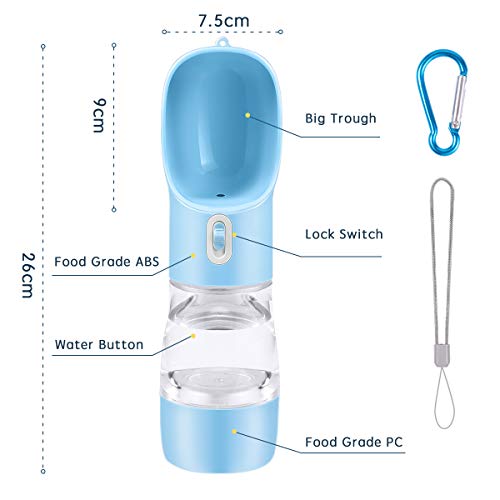 Specification: TUNAON Hund Wasserflasche, Multifunktionale Hundewasserflasche, Tragbare Trinkflasche für Hunde und Katzen, Pet Travel Water Drink Flasche (Blau/258ML)