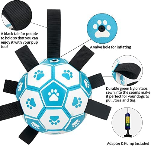 Specification: LOTUSWILD Hundeball Interaktives, Hundespielzeug Ball mit Greif-Bänder Haustierspielzeug Hundefußball Trainingsball Hundebälle mit Pumpe für kleine Hunde und mittelgroße Rassen (Blau)