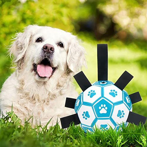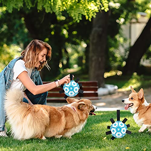 LOTUSWILD Hundeball Interaktives, Hundespielzeug Ball mit Greif-Bänder Haustierspielzeug Hundefußball Trainingsball Hundebälle mit Pumpe für kleine Hunde und mittelgroße Rassen (Blau)