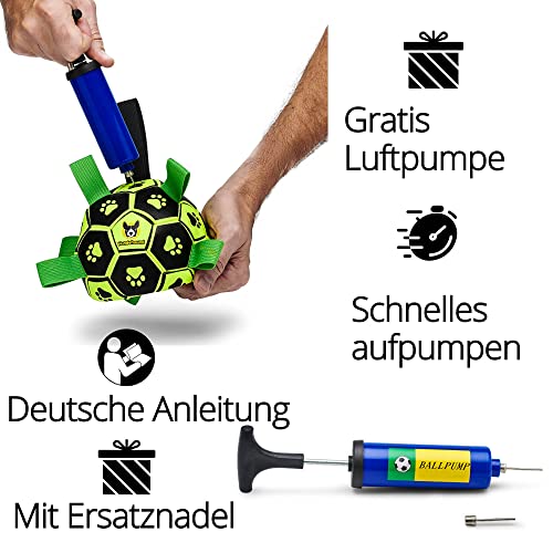 Specification: Hundefreund Hundefußball leuchtend mit Haltegriffen, Hundespielzeug Fußball für Hunde mit Pumpe, Interaktiver Hundeball (15 cm) für Drinnen, Draußen und im Wasser