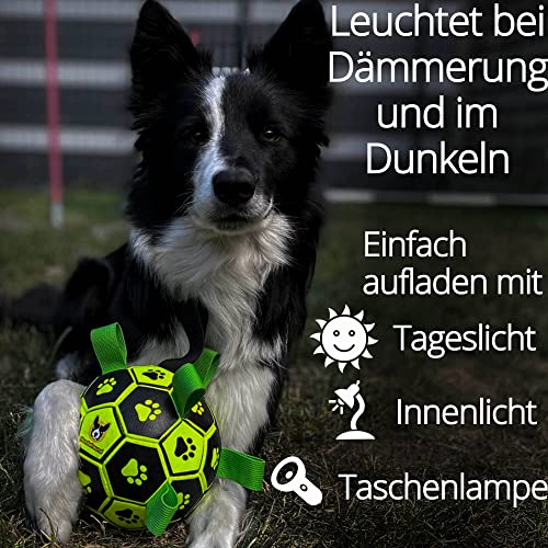 Hundefreund Hundefußball leuchtend mit Haltegriffen, Hundespielzeug Fußball für Hunde mit Pumpe, Interaktiver Hundeball (15 cm) für Drinnen, Draußen und im Wasser