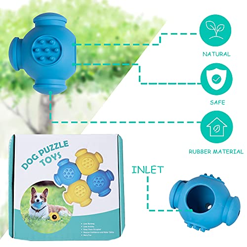 4 Stück Puzzle Hundeball mit Zahnpflege Funktion Noppen und Futtertrog