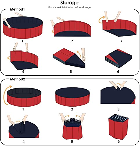 【Einfach zu falten und zu lagern】 Diser Hundepool lässt sich leicht zusammenklappen und nimmt im zusammengeklappten Zustand nicht viel Platz ein. Deswegen ist er leicht zu transportieren und verstauen. Wenn man einen Urlaub am Stand fährt, ist dieses Schwimmbecken für Ihre Haustiere eine gute Wahl.