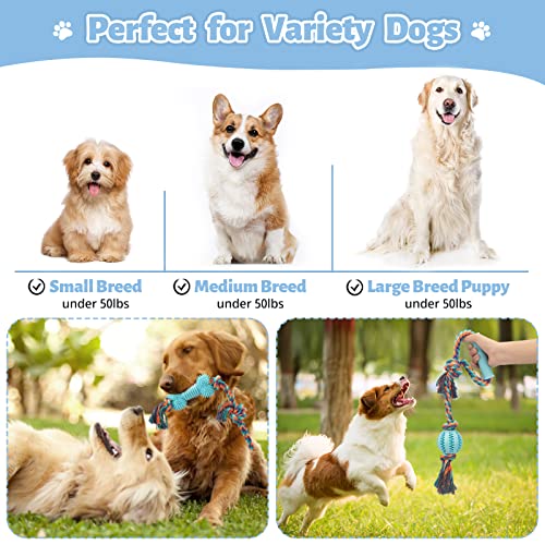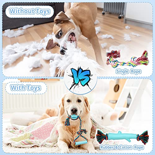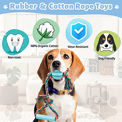 COZII Hundespielzeug Welpenspielzeug,Hundespielzeug Set Hundeseil, Natürliche Baumwolle mit Gummibällen für Aggressive Kauer, Hundespielzeug für kleine, Mittelgroße und Große Welpen